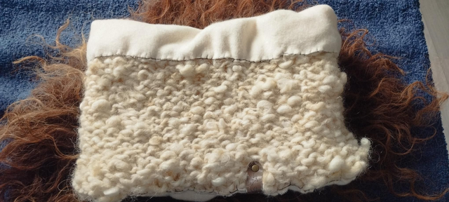 Snood en laine de couleur naturelle, file bouclette filé à la main.